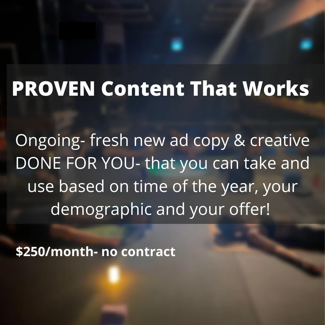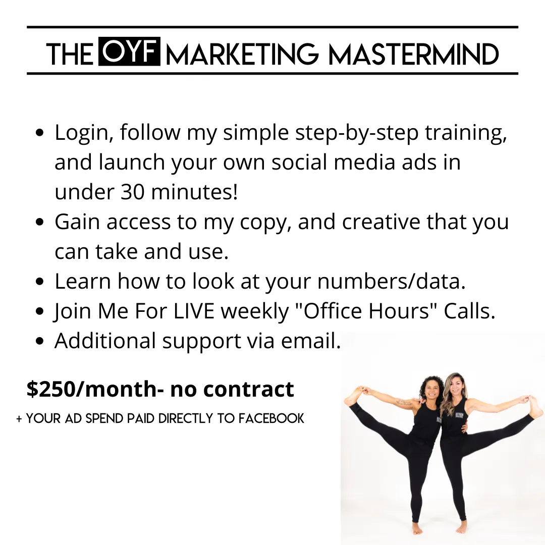 When you join this mastermind- you also gain access to copy that I have written and tested for years SPECIFICALLY for Oxygen Yoga & Fitness Studios that you can take and use when you set up your ads.